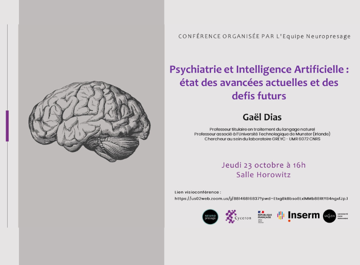 Conference of Pr. Gaël DIAS : “Psychiatrie et Intelligence Artificielle : état des avancées...