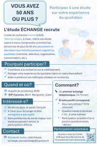 ÉCHANGE (« Étude de faisabilité d’un entretien semi-structuré explorant la perception subjective du fonctionnement cognitif chez des adultes de plus de 50 ans ») est une étude de faisabilité non interventionnelle menée à Caen.